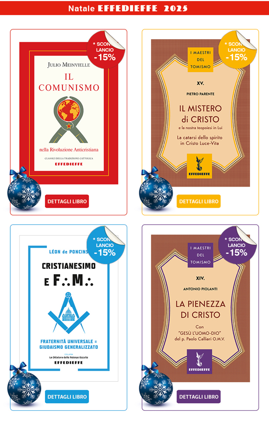 Anche per questo S. Natale riusciamo a pubblicare quattro libri che speriamo possano contribuire alla rinascita del pensiero cattolico (ed antisovversivo) in vista della restaurazione dell’ordine religioso, sociale politico ed economico.